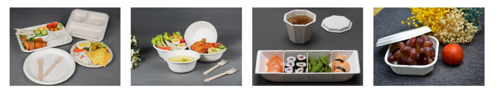Degradable pulp molding products are made of annual herb fiber pulp (bagasse, reed, wheat straw, bamboo, etc.) as raw materials, adding additives, after special treatment, heating and pressing on the mold.